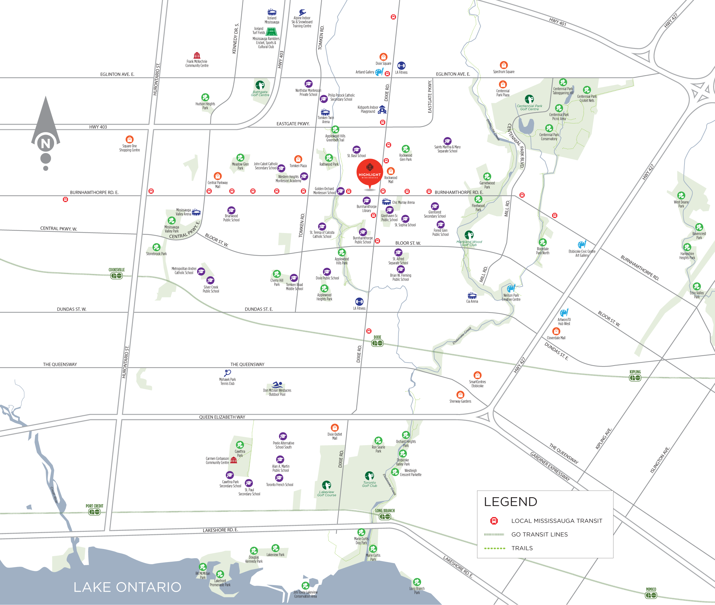 With its central location in south Mississauga, close to the intersection of Dixie and Burnhamthorpe Roads, Highlight is poised to offer you easy access to all of the city’s infinite attractions.